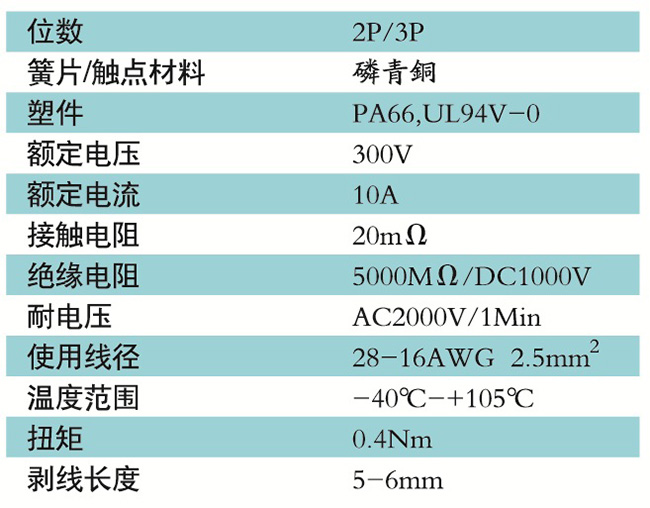 接線端子的絕緣材料用改性的尼龍(PA66),能達(dá)到或超過IEC947-7-1EN60947-7-1標(biāo)準(zhǔn),阻燃等級達(dá)到UL94,V-0具有良好的電氣性能和機(jī)械性能。螺絲用高強(qiáng)度的鋼制成鍍鋅或鎳處理,導(dǎo)電體四方針用合金銅制成表面鍍錫,壓片采用彈性及極強(qiáng)的磷青銅表面鍍錫或鎳;壓線框用抗應(yīng)力裂縫腐蝕的合金銅制成,這些金屬表面還鍍錫或鍍鎳加以保護(hù)。設(shè)計完全符合IEC60947-7-1.GB14048.7等標(biāo)準(zhǔn)。